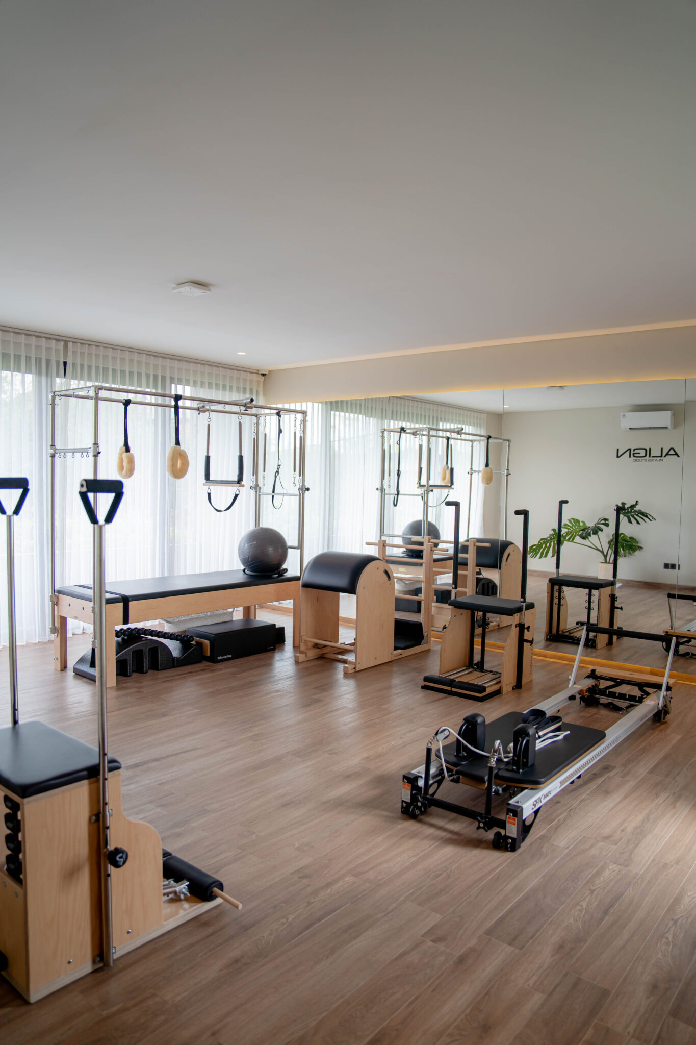 Align pilates is the foundational principles of proper body alignment, focuses on the core principle of body alignment to build strength, flexibility, and balance, often using the Pilates Reformer and emphasize controlled, precise movements that connect breath and core engagement to correct postural habits and improve overall efficiency in daily activities.